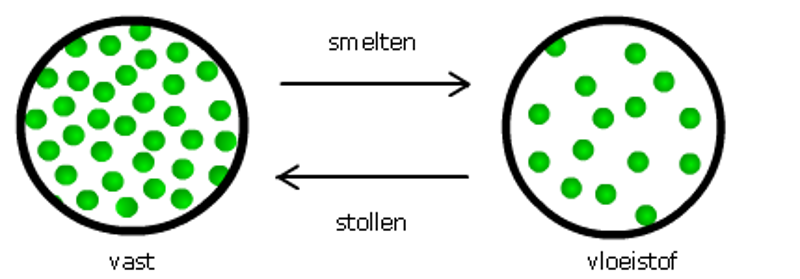 Smelt je ijsje dan verandert een vaste stof in een vloeibare stof.