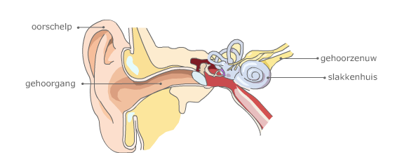De oorschelp vangt het geluid op.